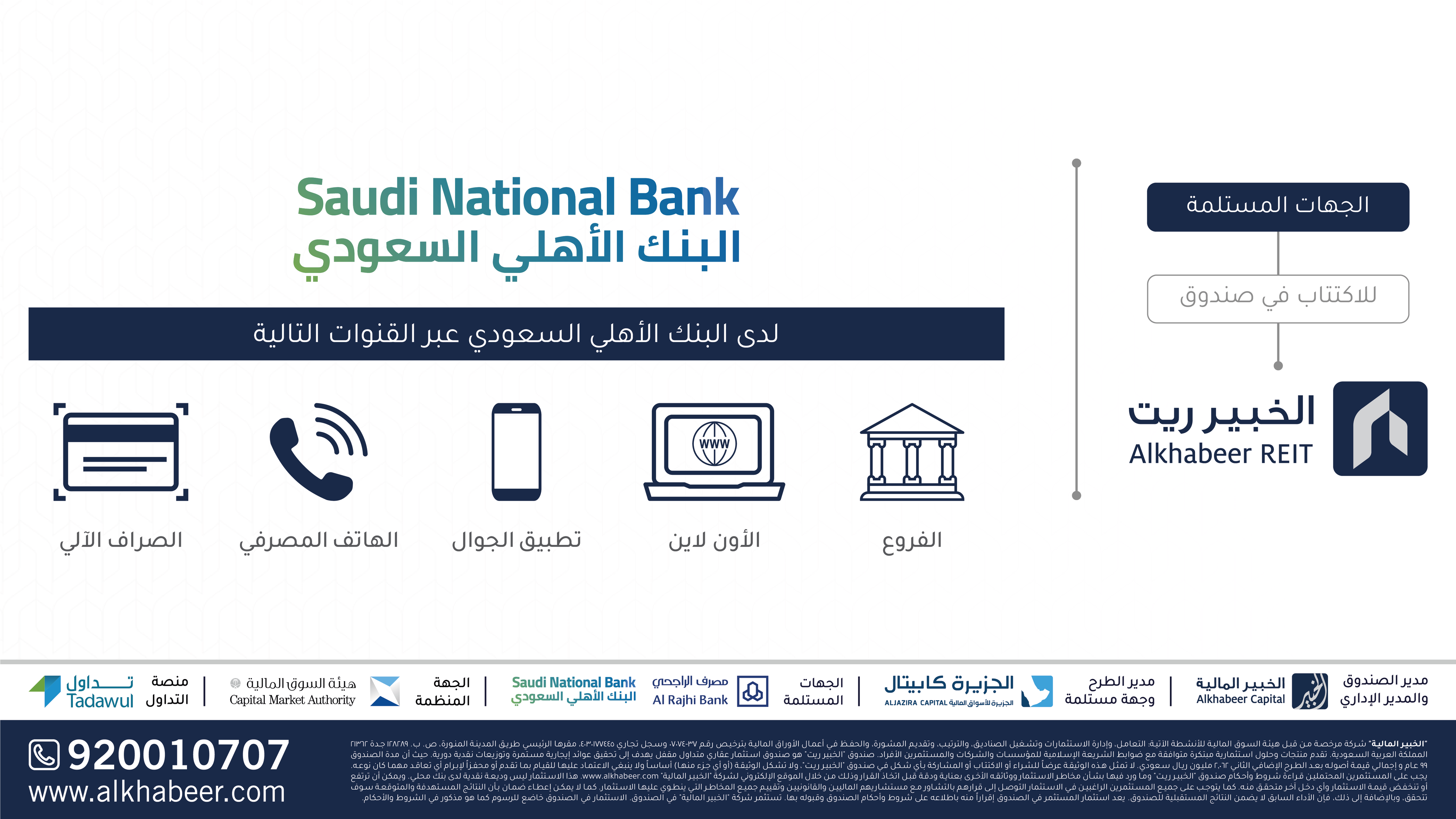 Alkhabeercap On Twitter يتاح الاكتتاب في الطرح الإضافي الثاني لصندوق الخبير ريت من خلال البنك الأهلي السعودي عبر القنوات التالية الخبير ريت الخبير المالية اكتتاب اشتراك Https T Co Kkpgm1vakd Twitter