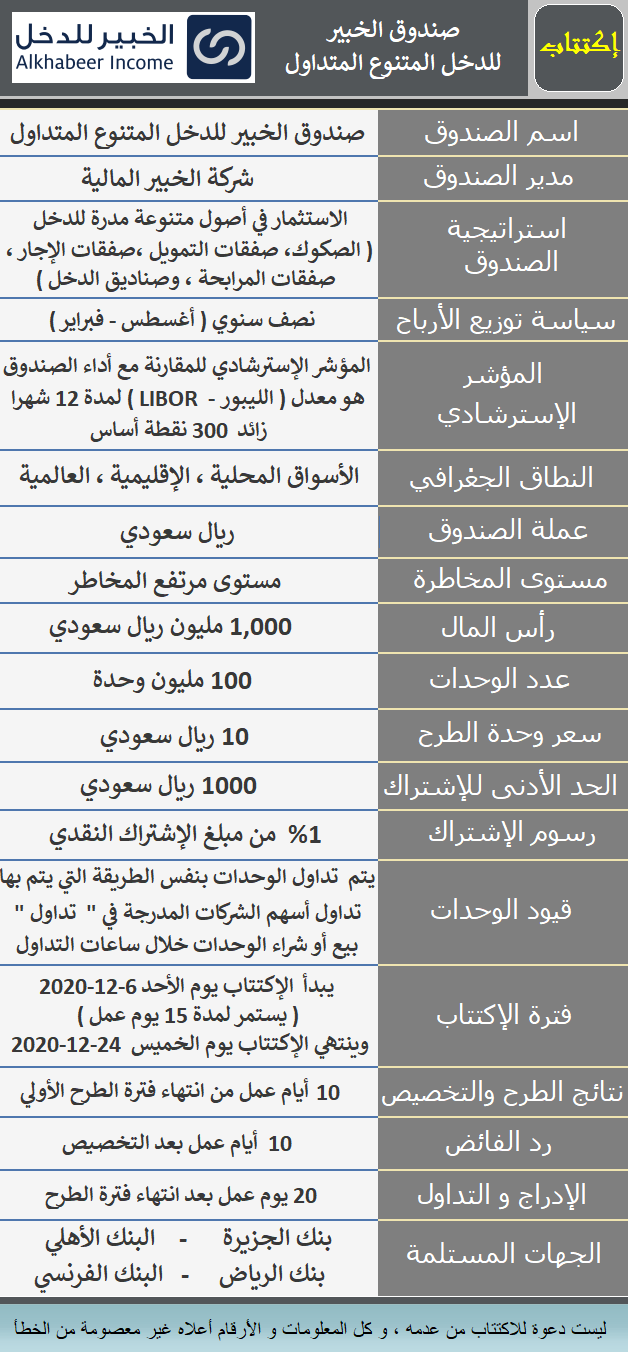 اكتتاب صندوق الخبير للدخل المتنوع المتداول يستقطب 89 ألف مكتتب بصافي اشتراكات 472 8 مليون ريال صحيفة صناديق