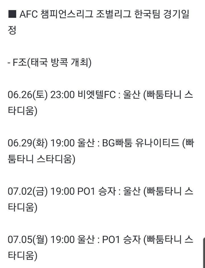 공지사항 Afc챔피언스리그 2020 조추첨 결과 및 일정 안내